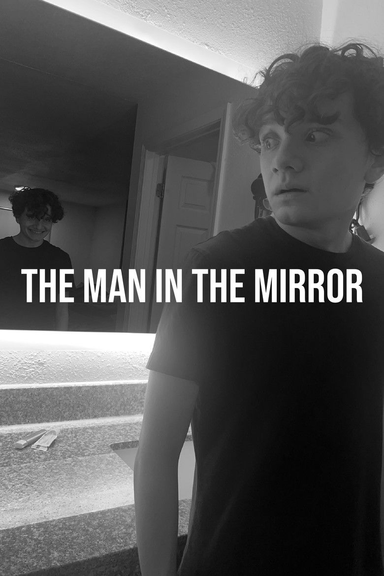 A man watches himself in the mirror, but the reflection doesn't match his movements.